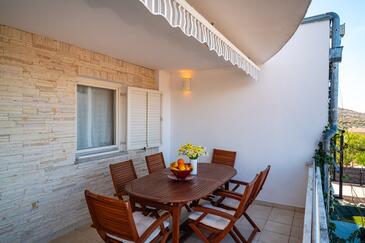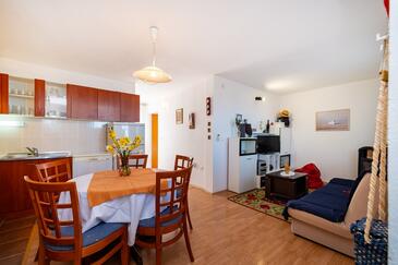 Ferienwohnung bietet Platz für 6 Gäste. Die Betten sind in Schlafzimmern, die es 3 gibt, innerhalb einer Gesamtfläche von 71m2, angeordnet. Die Gäste haben eine eigene Terrasse zur Verfügung, auf der sie in warmen Sommernächten genießen können. Das Apartment bietet Meerblick. Es ist erlaubt, Speisen auf dem Gemeinschafts-Grill vorzubereiten. In der Unterkunftseinheit besteht die Möglichkeit des Mitbringens von Haustieren gegen Aufpreis.