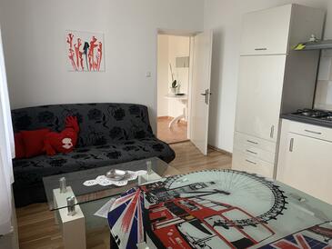 Ferienwohnung bietet Platz für 6 Gäste. Die Betten sind in Schlafzimmern, die es 2 gibt, und in Wohnzimmer, innerhalb einer Gesamtfläche von 55m2, angeordnet. Die Gäste haben eine eigene Terrasse zur Verfügung, auf der sie in warmen Sommernächten genießen können. Das Apartment bietet Meerblick. Es ist erlaubt, Speisen auf dem Gemeinschafts-Grill vorzubereiten. In der Unterkunftseinheit besteht die Möglichkeit des Mitbringens von Haustieren, und die Dienstleistung ist im Preis der Unterkunft enthalten.
