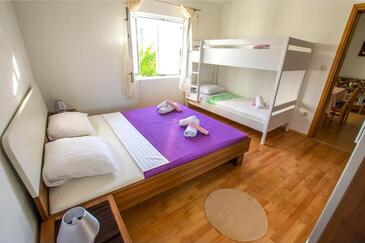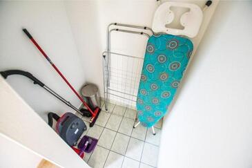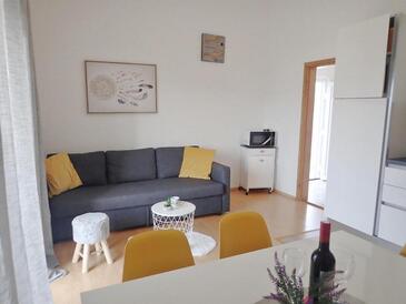 Ferienwohnung bietet Platz für 5 Gäste. Die Betten sind in Schlafzimmern, die es 2 gibt, und in Wohnzimmer, innerhalb einer Gesamtfläche von 55m2, angeordnet. Die Gäste haben eine eigene Terrasse zur Verfügung, auf der sie in warmen Sommernächten genießen können. Es ist erlaubt, Speisen auf dem Gemeinschafts-Grill vorzubereiten.