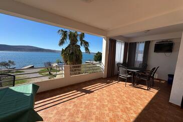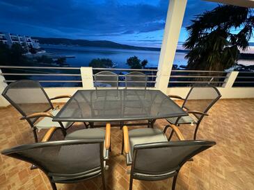 Ferienwohnung bietet Platz für 10 Gäste. Die Betten sind in Schlafzimmern, die es 3 gibt, innerhalb einer Gesamtfläche von 93m2, angeordnet. Die Gäste haben eine eigene Terrasse zur Verfügung, auf der sie in warmen Sommernächten genießen können. Das Apartment bietet Meerblick. Es ist erlaubt, Speisen auf dem Gemeinschafts-Grill vorzubereiten.