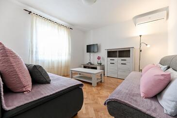 Ferienwohnung bietet Platz für 7 Gäste. Die Betten sind in Schlafzimmern, die es 2 gibt, und in Wohnzimmer, innerhalb einer Gesamtfläche von 69m2, angeordnet. Die Gäste haben eine eigene Terrasse zur Verfügung, auf der sie in warmen Sommernächten genießen können. Das Apartment bietet Meerblick. Für vollen Genuss und Entspannung gibt es einen privaten Grill für Gäste dieser Unterkunft. In der Unterkunftseinheit besteht die Möglichkeit des Mitbringens von Haustieren gegen Aufpreis.