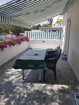 Ferienwohnung bietet Platz für 6 Gäste. Die Betten sind in Schlafzimmern, die es 2 gibt, innerhalb einer Gesamtfläche von 66m2, angeordnet. Die Gäste haben eine eigene Terrasse zur Verfügung, auf der sie in warmen Sommernächten genießen können. Es ist erlaubt, Speisen auf dem Gemeinschafts-Grill vorzubereiten.