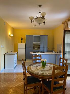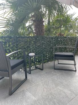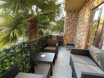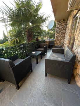 Ferienwohnung bietet Platz für 6 Gäste. Die Betten sind in Schlafzimmern, die es 3 gibt, innerhalb einer Gesamtfläche von 90m2, angeordnet. Die Gäste haben eine eigene Terrasse zur Verfügung, auf der sie in warmen Sommernächten genießen können. Das Apartment bietet Meerblick.