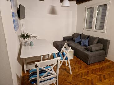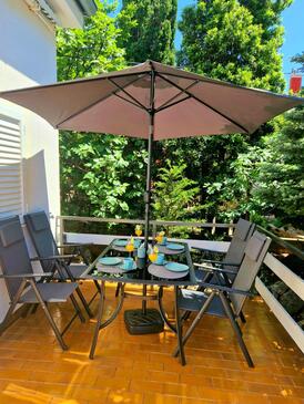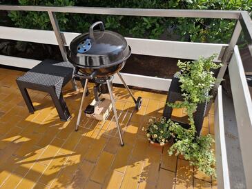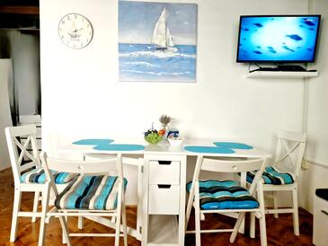 Haus bietet Platz für 4 Gäste. Die Betten sind in Schlafzimmern, die es 2 gibt, innerhalb einer Gesamtfläche von 41m2, angeordnet. Die Gäste haben eine eigene Terrasse zur Verfügung, auf der sie in warmen Sommernächten genießen können. Es ist erlaubt, Speisen auf dem Gemeinschafts-Grill vorzubereiten.