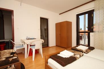 Ferienwohnung bietet Platz für 4 Gäste. Die Betten sind in Schlafzimmern, die es 1 gibt, und in Wohnzimmer, innerhalb einer Gesamtfläche von 35m2, angeordnet. Die Gäste haben eine eigene Terrasse zur Verfügung, auf der sie in warmen Sommernächten genießen können. Das Apartment bietet Meerblick. Es ist erlaubt, Speisen auf dem Gemeinschafts-Grill vorzubereiten.