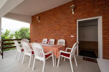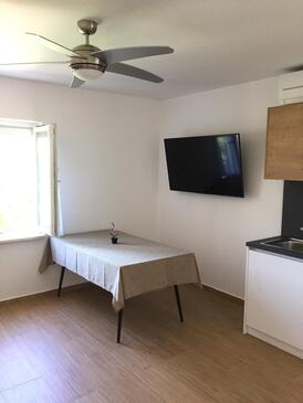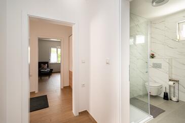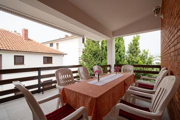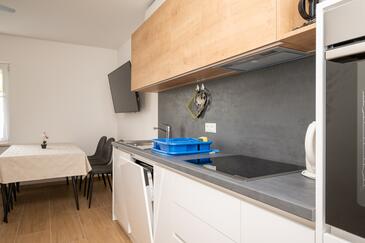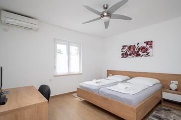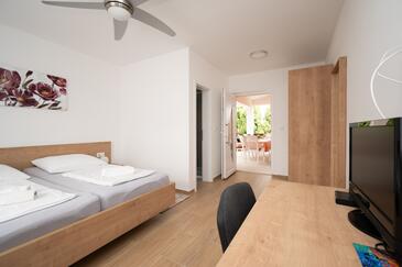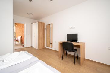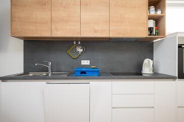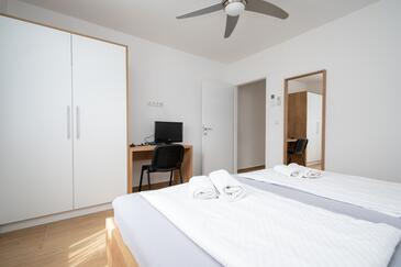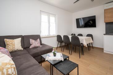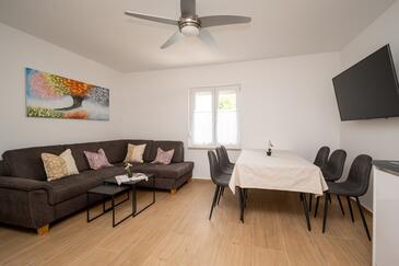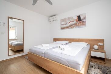Ferienwohnung bietet Platz für 5 Gäste. Die Betten sind in Schlafzimmern, die es 2 gibt, und in Wohnzimmer, innerhalb einer Gesamtfläche von 65m2, angeordnet. Die Gäste haben eine eigene Terrasse zur Verfügung, auf der sie in warmen Sommernächten genießen können. Es ist erlaubt, Speisen auf dem Gemeinschafts-Grill vorzubereiten.