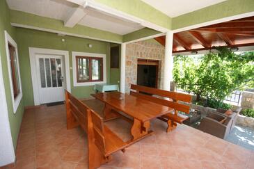 Ferienwohnung bietet Platz für 8 Gäste. Die Betten sind in Schlafzimmern, die es 3 gibt, innerhalb einer Gesamtfläche von 79m2, angeordnet. Die Gäste haben eine eigene Terrasse zur Verfügung, auf der sie in warmen Sommernächten genießen können. Es ist erlaubt, Speisen auf dem Gemeinschafts-Grill vorzubereiten. Durch die Terrasse der gebuchten Unterkunftseinheit gehen auch andere Gäste oder Vermieter.