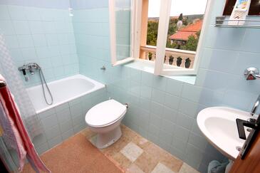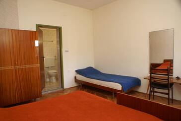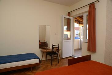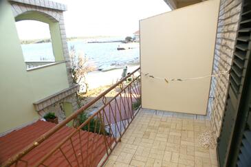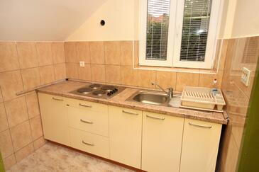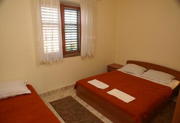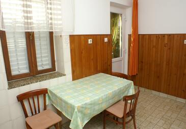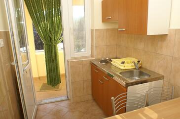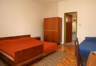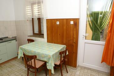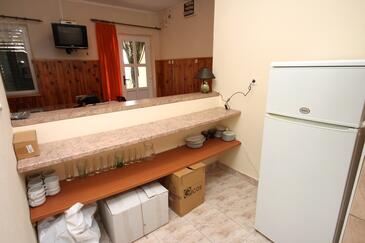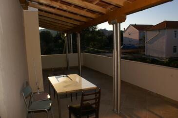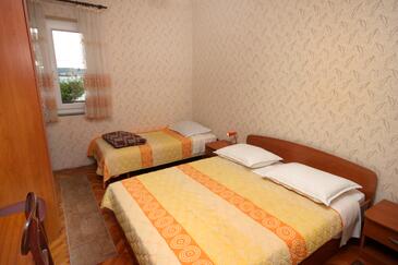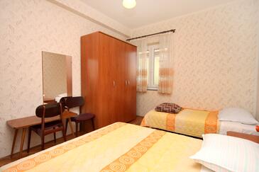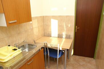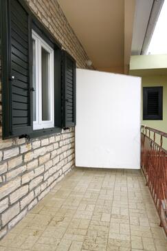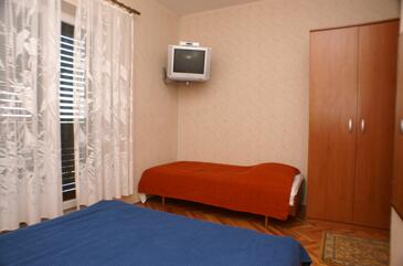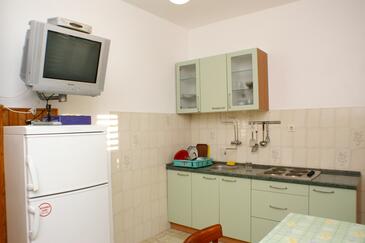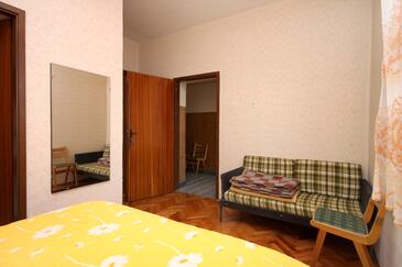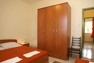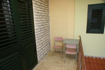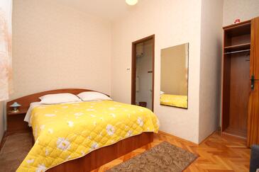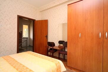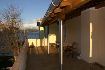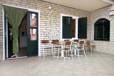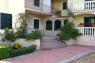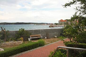 Ferienwohnung bietet Platz für 5 Gäste. Die Betten sind in Schlafzimmern, die es 2 gibt, innerhalb einer Gesamtfläche von 50m2, angeordnet. Die Gäste haben eine eigene Terrasse zur Verfügung, auf der sie in warmen Sommernächten genießen können. Das Apartment bietet Meerblick. Es ist erlaubt, Speisen auf dem Gemeinschafts-Grill vorzubereiten.
