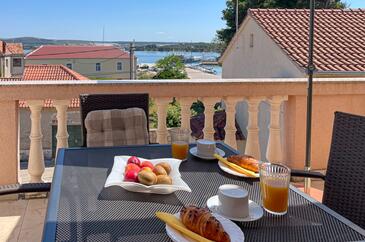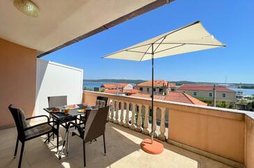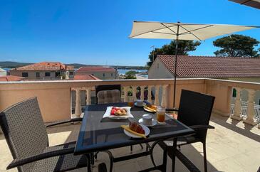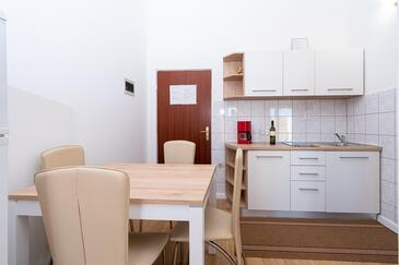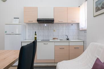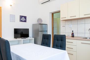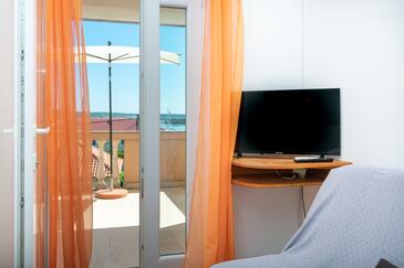 Ferienwohnung bietet Platz für 3 Gäste. Die Betten sind in Schlafzimmern, die es 1 gibt, und in Wohnzimmer, innerhalb einer Gesamtfläche von 25m2, angeordnet. Die Gäste haben eine eigene Terrasse zur Verfügung, auf der sie in warmen Sommernächten genießen können. Das Apartment bietet Meerblick. Es ist erlaubt, Speisen auf dem Gemeinschafts-Grill vorzubereiten.