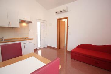 Ferienwohnung bietet Platz für 4 Gäste. Die Betten sind in Schlafzimmern, die es 1 gibt, und in Wohnzimmer, innerhalb einer Gesamtfläche von 29m2, angeordnet. Die Gäste haben eine eigene Terrasse zur Verfügung, auf der sie in warmen Sommernächten genießen können. Es ist erlaubt, Speisen auf dem Gemeinschafts-Grill vorzubereiten. In der Unterkunftseinheit besteht die Möglichkeit des Mitbringens von Haustieren gegen Aufpreis.