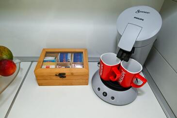 Haus bietet Platz für 4 Gäste. Die Betten sind in Schlafzimmern, die es 2 gibt, innerhalb einer Gesamtfläche von 47m2, angeordnet. Die Gäste haben eine eigene Terrasse zur Verfügung, auf der sie in warmen Sommernächten genießen können. Das Haus bietet Meerblick. Für vollen Genuss und Entspannung gibt es einen privaten Grill für Gäste dieser Unterkunft. In der Unterkunftseinheit besteht die Möglichkeit des Mitbringens von Haustieren gegen Aufpreis.