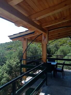 Haus bietet Platz für 6 Gäste. Die Betten sind in Schlafzimmern, die es 2 gibt, und in Wohnzimmer, innerhalb einer Gesamtfläche von 49m2, angeordnet. Die Gäste haben eine eigene Terrasse zur Verfügung, auf der sie in warmen Sommernächten genießen können. Das Haus bietet Meerblick. Es ist erlaubt, Speisen auf dem Gemeinschafts-Grill vorzubereiten.