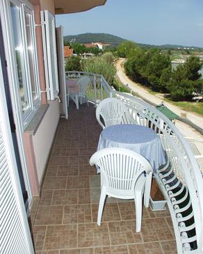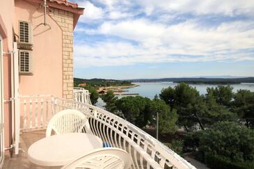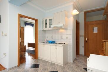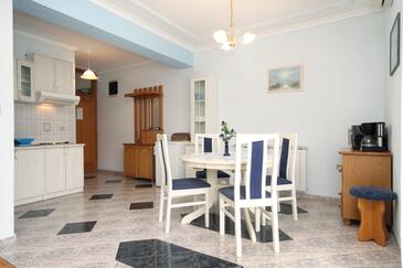 Ferienwohnung bietet Platz für 5 Gäste. Die Betten sind in Schlafzimmern, die es 2 gibt, und in Wohnzimmer, innerhalb einer Gesamtfläche von 42m2, angeordnet. Die Gäste haben eine eigene Terrasse zur Verfügung, auf der sie in warmen Sommernächten genießen können. Das Apartment bietet Meerblick. Es ist erlaubt, Speisen auf dem Gemeinschafts-Grill vorzubereiten. Während ihres Aufenthalts können Gäste das gemeinsam zur Nutzung stehende Schwimmbad benutzen.