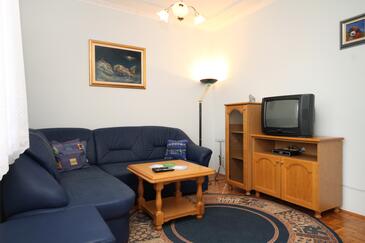 Ferienwohnung bietet Platz für 5 Gäste. Die Betten sind in Schlafzimmern, die es 2 gibt, und in Wohnzimmer, innerhalb einer Gesamtfläche von 42m2, angeordnet. Die Gäste haben eine eigene Terrasse zur Verfügung, auf der sie in warmen Sommernächten genießen können. Das Apartment bietet Meerblick. Es ist erlaubt, Speisen auf dem Gemeinschafts-Grill vorzubereiten. Während ihres Aufenthalts können Gäste das gemeinsam zur Nutzung stehende Schwimmbad benutzen.