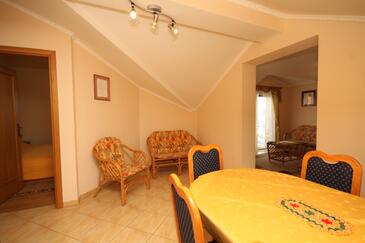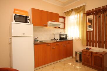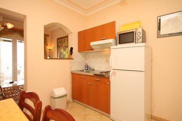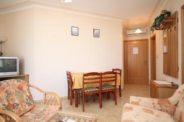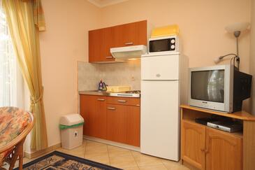 Ferienwohnung bietet Platz für 3 Gäste. Die Betten sind in Schlafzimmern, die es 1 gibt, und in Wohnzimmer, innerhalb einer Gesamtfläche von 30m2, angeordnet. Die Gäste haben einen eigenen Balkon zur Verfügung, auf der sie in warmen Sommernächten genießen können. Das Apartment bietet Meerblick. Es ist erlaubt, Speisen auf dem Gemeinschafts-Grill vorzubereiten.