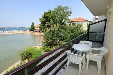 Ferienwohnung bietet Platz für 8 Gäste. Die Betten sind in Schlafzimmern, die es 3 gibt, innerhalb einer Gesamtfläche von 83m2, angeordnet. Die Gäste haben eine eigene Terrasse zur Verfügung, auf der sie in warmen Sommernächten genießen können. Das Apartment bietet Meerblick. Es ist erlaubt, Speisen auf dem Gemeinschafts-Grill vorzubereiten.