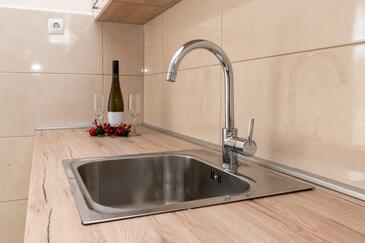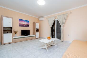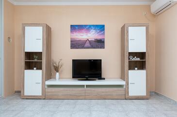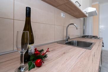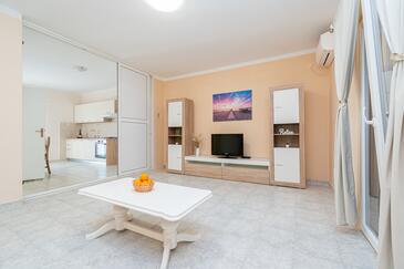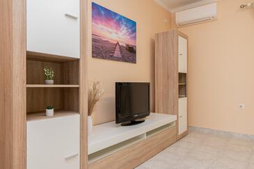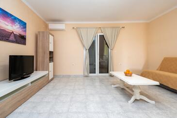 Ferienwohnung bietet Platz für 6 Gäste. Die Betten sind in Schlafzimmern, die es 2 gibt, und in Wohnzimmer, innerhalb einer Gesamtfläche von 73m2, angeordnet. Die Gäste haben eine eigene Terrasse zur Verfügung, auf der sie in warmen Sommernächten genießen können. Das Apartment bietet Meerblick. Es ist erlaubt, Speisen auf dem Gemeinschafts-Grill vorzubereiten. Über den Balkon der gebuchten UNterkunftseinheit gehen auch andere Gäste oder Vermieter.