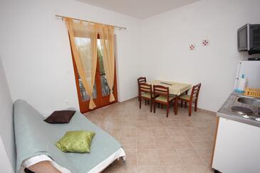 Ferienwohnung bietet Platz für 4 Gäste. Die Betten sind in Schlafzimmern, die es 1 gibt, und in Esszimmer, innerhalb einer Gesamtfläche von 28m2, angeordnet. Die Gäste haben eine eigene Terrasse zur Verfügung, auf der sie in warmen Sommernächten genießen können. Das Apartment bietet Meerblick. Es ist erlaubt, Speisen auf dem Gemeinschafts-Grill vorzubereiten.