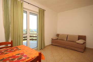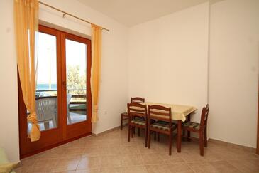 Ferienwohnung bietet Platz für 4 Gäste. Die Betten sind in Schlafzimmern, die es 1 gibt, und in Esszimmer, innerhalb einer Gesamtfläche von 28m2, angeordnet. Die Gäste haben eine eigene Terrasse zur Verfügung, auf der sie in warmen Sommernächten genießen können. Das Apartment bietet Meerblick. Es ist erlaubt, Speisen auf dem Gemeinschafts-Grill vorzubereiten.