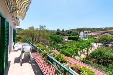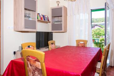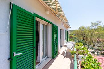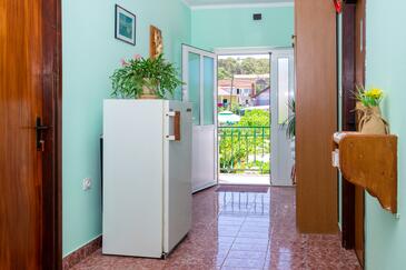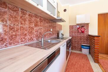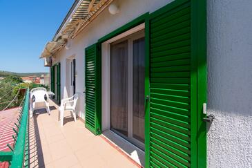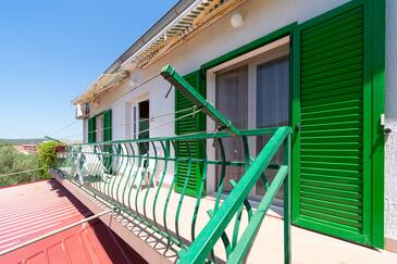 Ferienwohnung bietet Platz für 7 Gäste. Die Betten sind in Schlafzimmern, die es 3 gibt, innerhalb einer Gesamtfläche von 77m2, angeordnet. Die Gäste haben einen eigenen Balkon zur Verfügung, auf der sie in warmen Sommernächten genießen können. Es ist erlaubt, Speisen auf dem Gemeinschafts-Grill vorzubereiten.