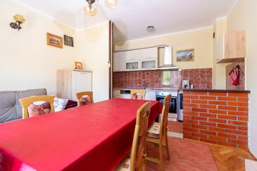 Ferienwohnung bietet Platz für 7 Gäste. Die Betten sind in Schlafzimmern, die es 3 gibt, innerhalb einer Gesamtfläche von 77m2, angeordnet. Die Gäste haben einen eigenen Balkon zur Verfügung, auf der sie in warmen Sommernächten genießen können. Es ist erlaubt, Speisen auf dem Gemeinschafts-Grill vorzubereiten.