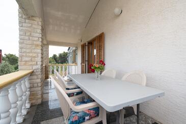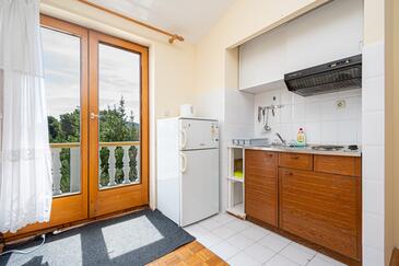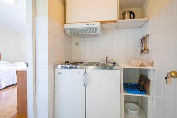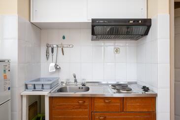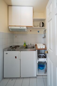 Studio bietet Platz für 3 Gäste. Die Betten sind in Schlafzimmern, die es 1 gibt, innerhalb einer Gesamtfläche von 26m2, angeordnet. Die Gäste haben eine eigene Terrasse zur Verfügung, auf der sie in warmen Sommernächten genießen können. Das Studio-Apartment bietet Meerblick. Es ist erlaubt, Speisen auf dem Gemeinschafts-Grill vorzubereiten.
