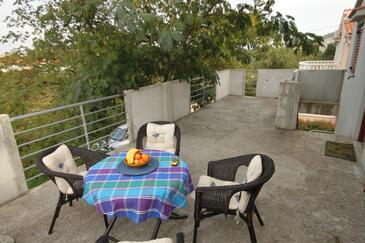 Ferienwohnung bietet Platz für 3 Gäste. Die Betten sind in Schlafzimmern, die es 1 gibt, und in Esszimmer, innerhalb einer Gesamtfläche von 27m2, angeordnet. Die Gäste haben eine eigene Terrasse zur Verfügung, auf der sie in warmen Sommernächten genießen können. Das Apartment bietet Meerblick. Es ist erlaubt, Speisen auf dem Gemeinschafts-Grill vorzubereiten.