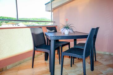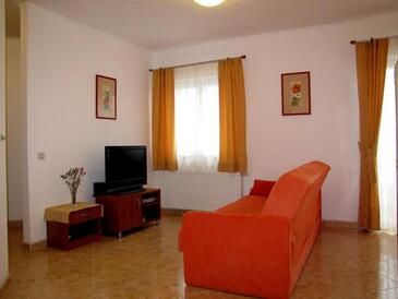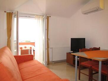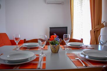 Ferienwohnung bietet Platz für 6 Gäste. Die Betten sind in Schlafzimmern, die es 2 gibt, und in Wohnzimmer, innerhalb einer Gesamtfläche von 50m2, angeordnet. Die Gäste haben eine eigene Terrasse zur Verfügung, auf der sie in warmen Sommernächten genießen können. Das Apartment bietet Meerblick. Es ist erlaubt, Speisen auf dem Gemeinschafts-Grill vorzubereiten. Während ihres Aufenthalts können Gäste das gemeinsam zur Nutzung stehende Schwimmbad benutzen.