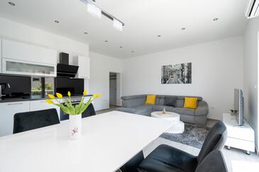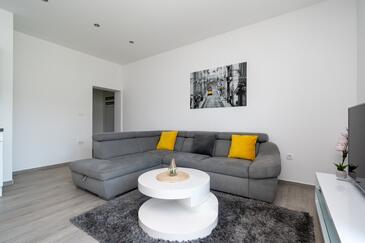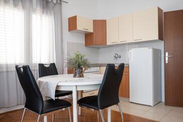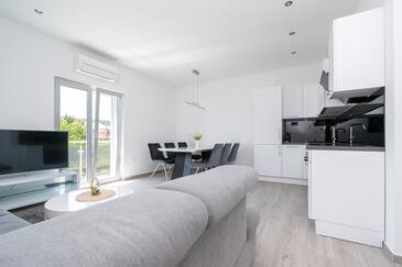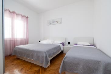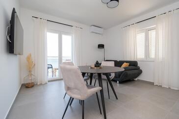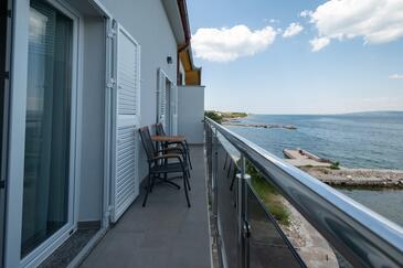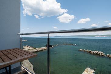 Ferienwohnung bietet Platz für 4 Gäste. Die Betten sind in Schlafzimmern, die es 2 gibt, innerhalb einer Gesamtfläche von 63m2, angeordnet. Die Gäste haben einen eigenen Balkon zur Verfügung, auf der sie in warmen Sommernächten genießen können. Das Apartment bietet Meerblick. Es ist erlaubt, Speisen auf dem Gemeinschafts-Grill vorzubereiten.