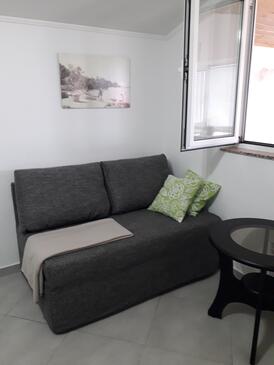 Ferienwohnung bietet Platz für 4 Gäste. Die Betten sind in Schlafzimmern, die es 2 gibt, innerhalb einer Gesamtfläche von 43m2, angeordnet. Die Gäste haben eine eigene Terrasse zur Verfügung, auf der sie in warmen Sommernächten genießen können. Das Apartment bietet Meerblick. Es ist erlaubt, Speisen auf dem Gemeinschafts-Grill vorzubereiten.