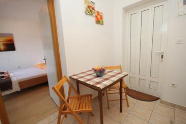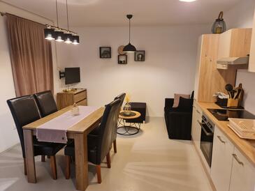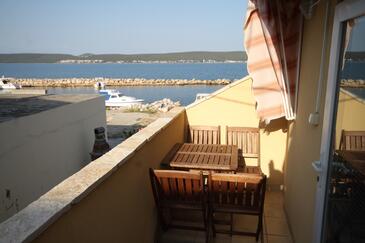 Ferienwohnung bietet Platz für 5 Gäste. Die Betten sind in Schlafzimmern, die es 2 gibt, und in Wohnzimmer, innerhalb einer Gesamtfläche von 53m2, angeordnet. Die Gäste haben eine eigene Terrasse zur Verfügung, auf der sie in warmen Sommernächten genießen können. Das Apartment bietet Meerblick. Es ist erlaubt, Speisen auf dem Gemeinschafts-Grill vorzubereiten. In der Unterkunftseinheit besteht die Möglichkeit des Mitbringens von Haustieren gegen Aufpreis.