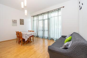 Ferienwohnung bietet Platz für 5 Gäste. Die Betten sind in Schlafzimmern, die es 2 gibt, und in Esszimmer, innerhalb einer Gesamtfläche von 53m2, angeordnet. Die Gäste haben eine eigene Terrasse zur Verfügung, auf der sie in warmen Sommernächten genießen können. Das Apartment bietet Meerblick. Es ist erlaubt, Speisen auf dem Gemeinschafts-Grill vorzubereiten. In der Unterkunftseinheit besteht die Möglichkeit des Mitbringens von Haustieren, und die Dienstleistung ist im Preis der Unterkunft enthalten.