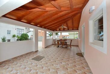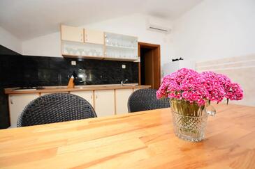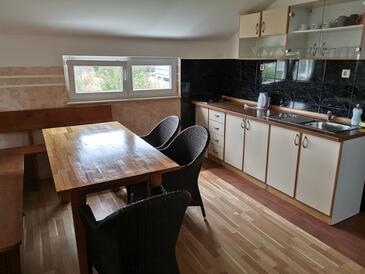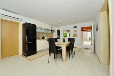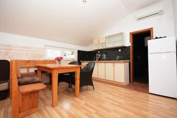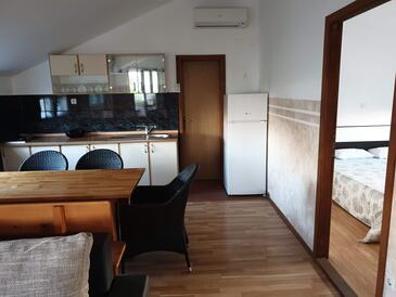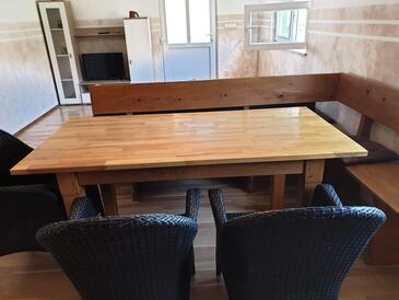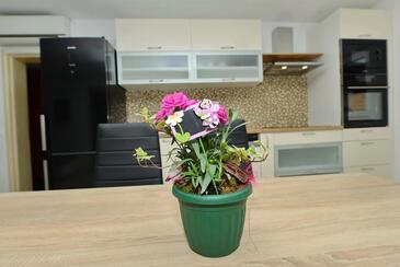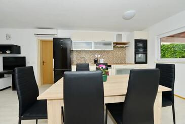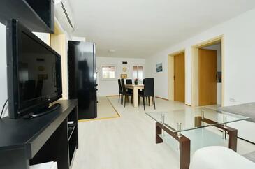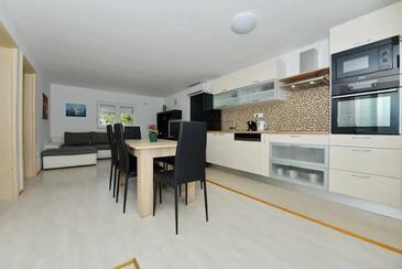 Ferienwohnung bietet Platz für 5 Gäste. Die Betten sind in Schlafzimmern, die es 2 gibt, und in Wohnzimmer, innerhalb einer Gesamtfläche von 55m2, angeordnet. Die Gäste haben eine eigene Terrasse zur Verfügung, auf der sie in warmen Sommernächten genießen können. Es ist erlaubt, Speisen auf dem Gemeinschafts-Grill vorzubereiten. In der Unterkunftseinheit besteht die Möglichkeit des Mitbringens von Haustieren gegen Aufpreis.