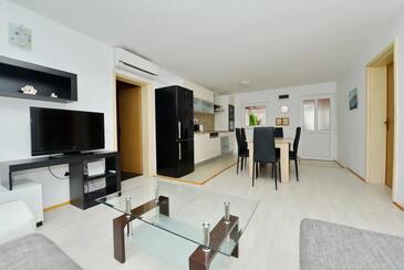 Ferienwohnung bietet Platz für 5 Gäste. Die Betten sind in Schlafzimmern, die es 2 gibt, und in Wohnzimmer, innerhalb einer Gesamtfläche von 55m2, angeordnet. Die Gäste haben eine eigene Terrasse zur Verfügung, auf der sie in warmen Sommernächten genießen können. Es ist erlaubt, Speisen auf dem Gemeinschafts-Grill vorzubereiten. In der Unterkunftseinheit besteht die Möglichkeit des Mitbringens von Haustieren gegen Aufpreis.