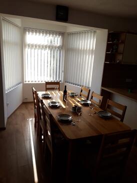 Ferienwohnung bietet Platz für 5 Gäste. Die Betten sind in Schlafzimmern, die es 2 gibt, innerhalb einer Gesamtfläche von 77m2, angeordnet. Die Gäste haben eine eigene Terrasse zur Verfügung, auf der sie in warmen Sommernächten genießen können. Das Apartment bietet Meerblick. Es ist erlaubt, Speisen auf dem Gemeinschafts-Grill vorzubereiten.