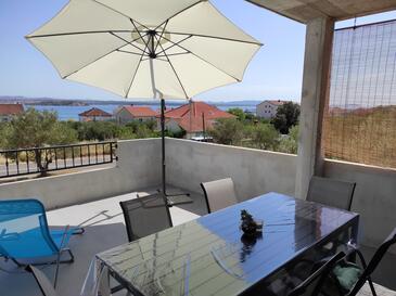 Ferienwohnung bietet Platz für 5 Gäste. Die Betten sind in Schlafzimmern, die es 2 gibt, innerhalb einer Gesamtfläche von 77m2, angeordnet. Die Gäste haben eine eigene Terrasse zur Verfügung, auf der sie in warmen Sommernächten genießen können. Das Apartment bietet Meerblick. Es ist erlaubt, Speisen auf dem Gemeinschafts-Grill vorzubereiten.