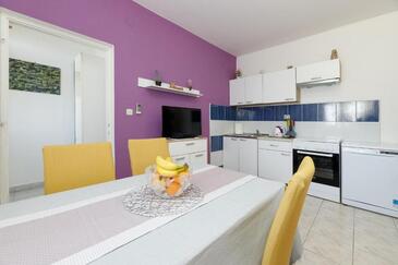 Ferienwohnung bietet Platz für 4 Gäste. Die Betten sind in Schlafzimmern, die es 1 gibt, und in Wohnzimmer, innerhalb einer Gesamtfläche von 33m2, angeordnet. Die Gäste haben eine eigene Terrasse zur Verfügung, auf der sie in warmen Sommernächten genießen können. Das Apartment bietet Meerblick. Es ist erlaubt, Speisen auf dem Gemeinschafts-Grill vorzubereiten.
