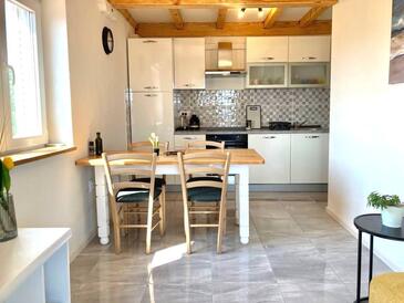 Ferienwohnung bietet Platz für 4 Gäste. Die Betten sind in Schlafzimmern, die es 2 gibt, innerhalb einer Gesamtfläche von 44m2, angeordnet. Die Gäste haben eine eigene Terrasse zur Verfügung, auf der sie in warmen Sommernächten genießen können. Das Apartment bietet Meerblick.