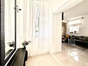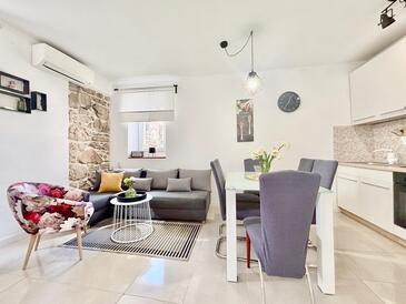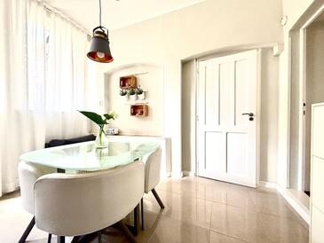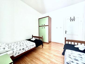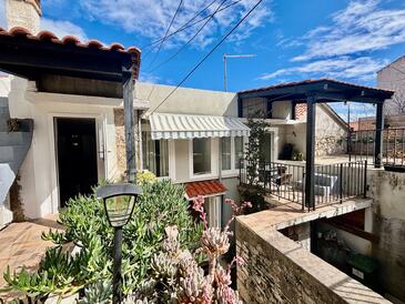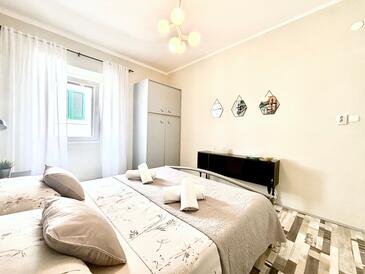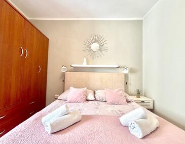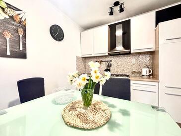 Ferienwohnung bietet Platz für 5 Gäste. Die Betten sind in Schlafzimmern, die es 2 gibt, innerhalb einer Gesamtfläche von 55m2, angeordnet. Die Gäste haben eine eigene Terrasse zur Verfügung, auf der sie in warmen Sommernächten genießen können. Es ist erlaubt, Speisen auf dem Gemeinschafts-Grill vorzubereiten.