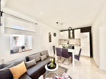 Ferienwohnung bietet Platz für 5 Gäste. Die Betten sind in Schlafzimmern, die es 2 gibt, innerhalb einer Gesamtfläche von 55m2, angeordnet. Die Gäste haben eine eigene Terrasse zur Verfügung, auf der sie in warmen Sommernächten genießen können. Es ist erlaubt, Speisen auf dem Gemeinschafts-Grill vorzubereiten.