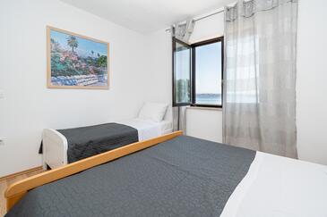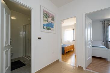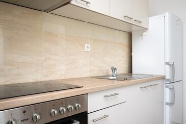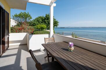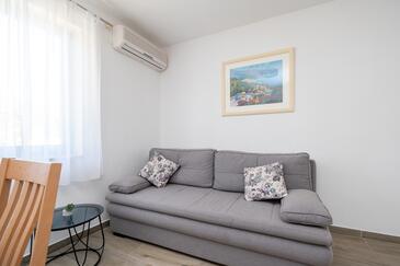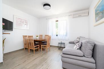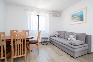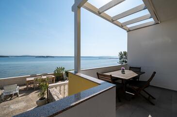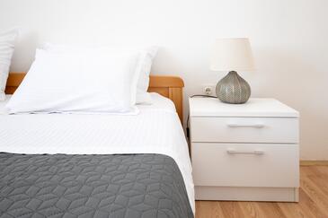Ferienwohnung bietet Platz für 7 Gäste. Die Betten sind in Schlafzimmern, die es 3 gibt, innerhalb einer Gesamtfläche von 85m2, angeordnet. Die Gäste haben eine eigene Terrasse zur Verfügung, auf der sie in warmen Sommernächten genießen können. Das Apartment bietet Meerblick. Es ist erlaubt, Speisen auf dem Gemeinschafts-Grill vorzubereiten. Räume der gebuchten Unterkunftseinheit werden nicht in eine Ganze verbunden.