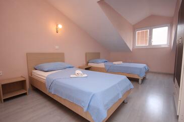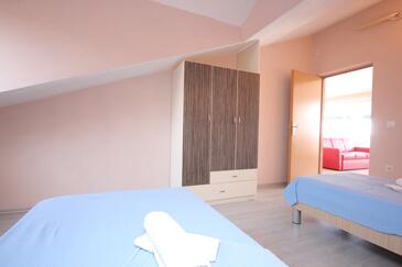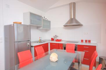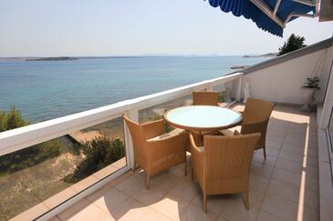 Ferienwohnung bietet Platz für 5 Gäste. Die Betten sind in Schlafzimmern, die es 2 gibt, und in Wohnzimmer, innerhalb einer Gesamtfläche von 64m2, angeordnet. Die Gäste haben eine eigene Terrasse zur Verfügung, auf der sie in warmen Sommernächten genießen können. Das Apartment bietet Meerblick. Es ist erlaubt, Speisen auf dem Gemeinschafts-Grill vorzubereiten.