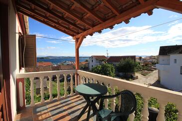 Ferienwohnung bietet Platz für 5 Gäste. Die Betten sind in Schlafzimmern, die es 2 gibt, innerhalb einer Gesamtfläche von 68m2, angeordnet. Die Gäste haben eine eigene Terrasse zur Verfügung, auf der sie in warmen Sommernächten genießen können. Das Apartment bietet Meerblick. Es ist erlaubt, Speisen auf dem Gemeinschafts-Grill vorzubereiten. In der Unterkunftseinheit besteht die Möglichkeit des Mitbringens von Haustieren gegen Aufpreis.