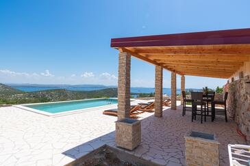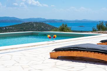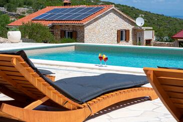 Haus bietet Platz für 5 Gäste. Die Betten sind in Schlafzimmern, die es 2 gibt, und in Wohnzimmer, innerhalb einer Gesamtfläche von 61m2, angeordnet. Die Gäste haben eine eigene Terrasse zur Verfügung, auf der sie in warmen Sommernächten genießen können. Das Haus bietet Meerblick. Für vollen Genuss und Entspannung gibt es einen privaten Grill für Gäste dieser Unterkunft. Während ihres Aufenthalts können sich Gäste im privaten Schwimmbad entspannen.
