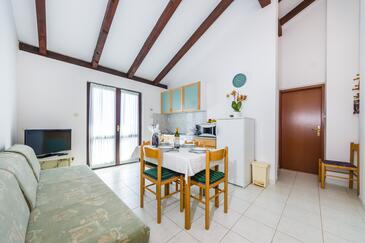 Ferienwohnung bietet Platz für 2 Gäste. Die Betten sind in Schlafzimmern, die es 1 gibt, innerhalb einer Gesamtfläche von 33m2, angeordnet. Die Gäste haben eine eigene Terrasse zur Verfügung, auf der sie in warmen Sommernächten genießen können. Das Apartment bietet Meerblick. Es ist erlaubt, Speisen auf dem Gemeinschafts-Grill vorzubereiten. In der Unterkunftseinheit besteht die Möglichkeit des Mitbringens von Haustieren gegen Aufpreis.
