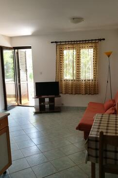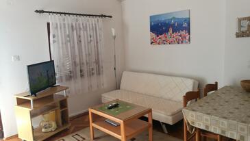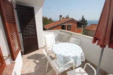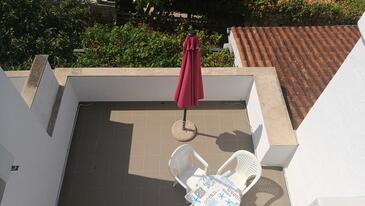 Ferienwohnung bietet Platz für 6 Gäste. Die Betten sind in Schlafzimmern, die es 2 gibt, und in Wohnzimmer, innerhalb einer Gesamtfläche von 52m2, angeordnet. Die Gäste haben eine eigene Terrasse zur Verfügung, auf der sie in warmen Sommernächten genießen können. Das Apartment bietet Meerblick. Es ist erlaubt, Speisen auf dem Gemeinschafts-Grill vorzubereiten.