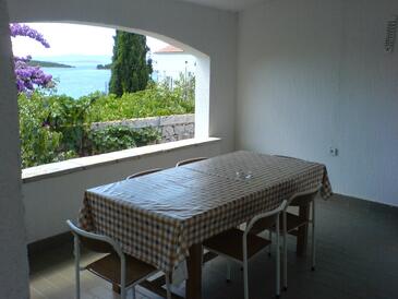 Ferienwohnung bietet Platz für 6 Gäste. Die Betten sind in Schlafzimmern, die es 2 gibt, und in Wohnzimmer, innerhalb einer Gesamtfläche von 52m2, angeordnet. Die Gäste haben eine eigene Terrasse zur Verfügung, auf der sie in warmen Sommernächten genießen können. Das Apartment bietet Meerblick. Es ist erlaubt, Speisen auf dem Gemeinschafts-Grill vorzubereiten.