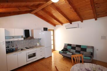 Ferienwohnung bietet Platz für 4 Gäste. Die Betten sind in Schlafzimmern, die es 1 gibt, und in Esszimmer, innerhalb einer Gesamtfläche von 29m2, angeordnet. Die Gäste haben eine eigene Terrasse zur Verfügung, auf der sie in warmen Sommernächten genießen können. Das Apartment bietet Meerblick. Es ist erlaubt, Speisen auf dem Gemeinschafts-Grill vorzubereiten. In der Unterkunftseinheit besteht die Möglichkeit des Mitbringens von Haustieren gegen Aufpreis.