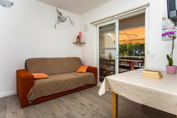 Ferienwohnung bietet Platz für 3 Gäste. Die Betten sind in Schlafzimmern, die es 1 gibt, und in Esszimmer, innerhalb einer Gesamtfläche von 30m2, angeordnet. Die Gäste haben einen eigenen Balkon zur Verfügung, auf der sie in warmen Sommernächten genießen können. Das Apartment bietet Meerblick. Es ist erlaubt, Speisen auf dem Gemeinschafts-Grill vorzubereiten.