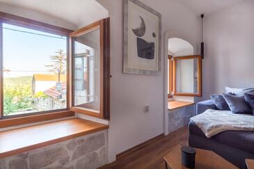 Haus bietet Platz für 3 Gäste. Die Betten sind in Schlafzimmern, die es 1 gibt, und in Wohnzimmer, innerhalb einer Gesamtfläche von 58m2, angeordnet. Die Gäste haben eine eigene Terrasse zur Verfügung, auf der sie in warmen Sommernächten genießen können. Für vollen Genuss und Entspannung gibt es einen privaten Grill für Gäste dieser Unterkunft. In der Unterkunftseinheit besteht die Möglichkeit des Mitbringens von Haustieren, und die Dienstleistung ist im Preis der Unterkunft enthalten.